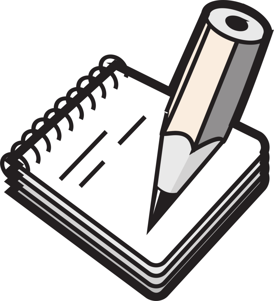 ![Блокнот и ручка мультяшная]()