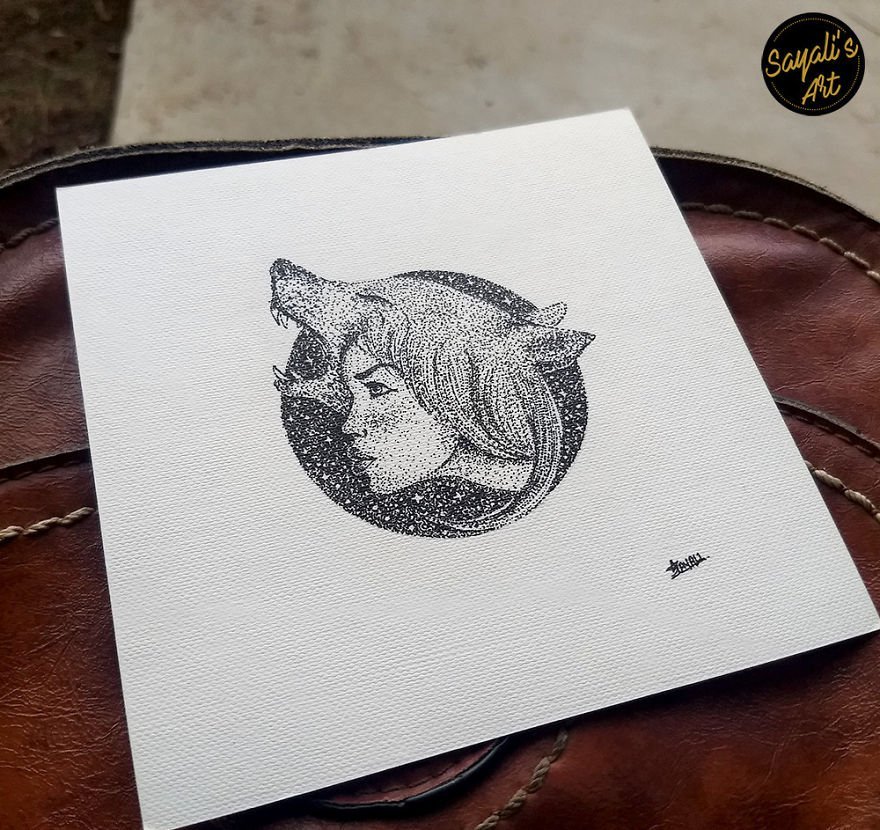 ![Рисование точками черной ручкой]()