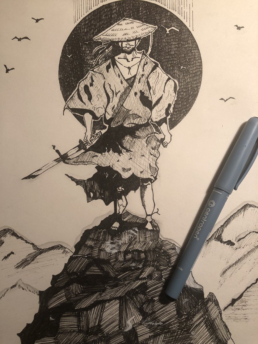 ![Самурай рисунок ручкой]()