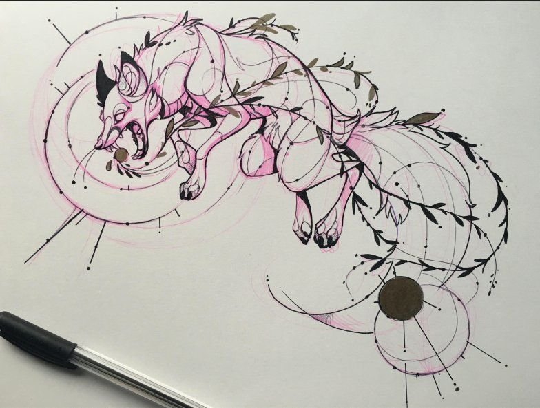 Тату лиса в стиле скетч