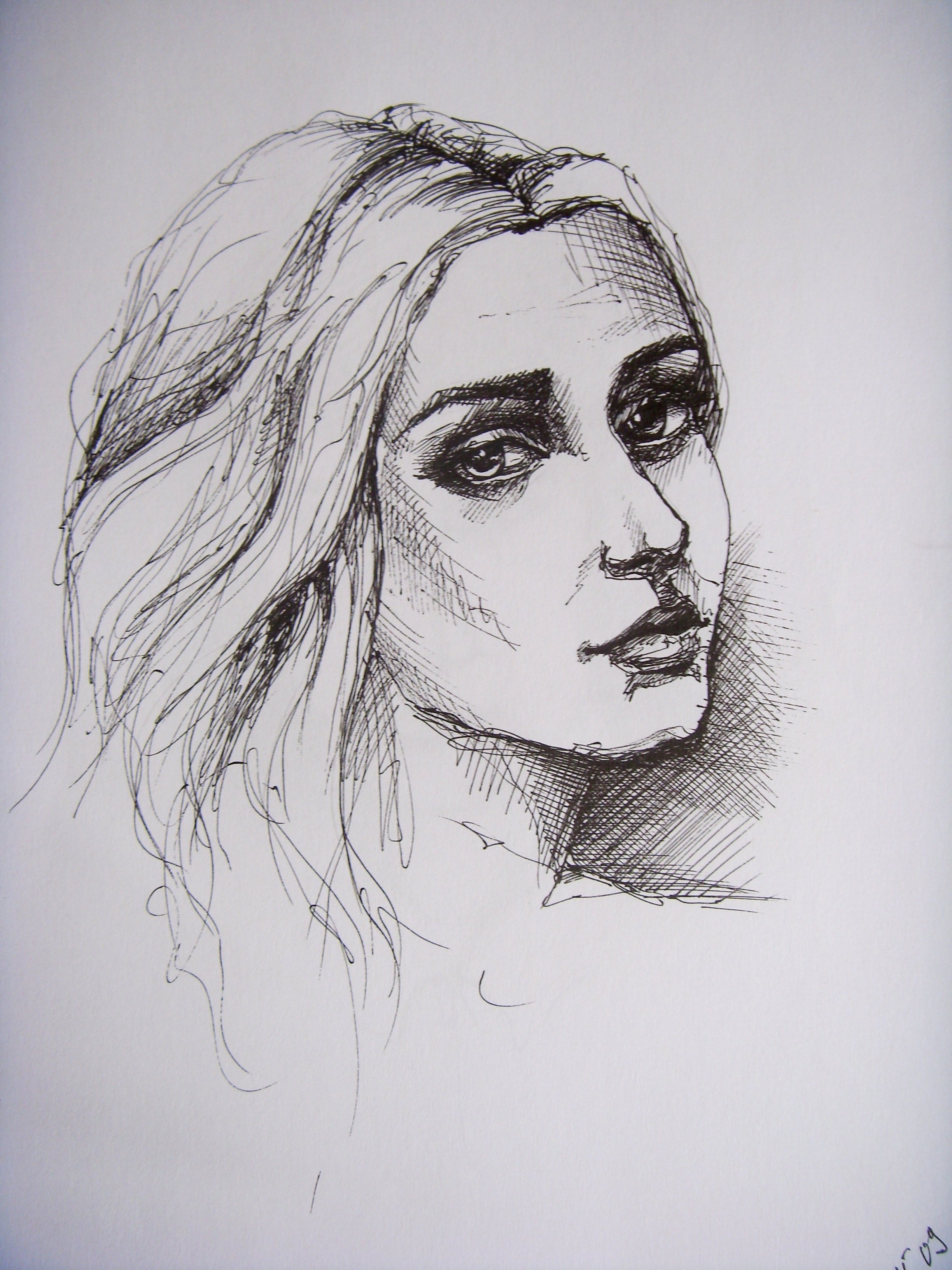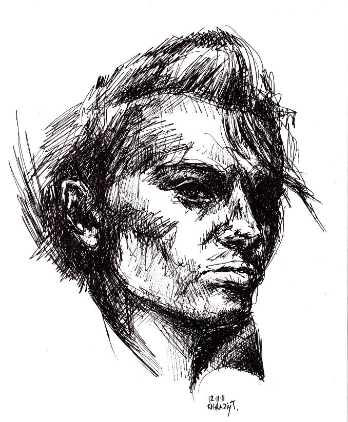 ![Портрет черной ручкой]()