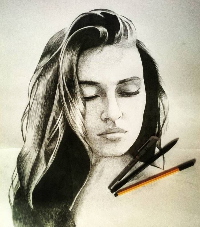 ![Портрет гелевой ручкой]()