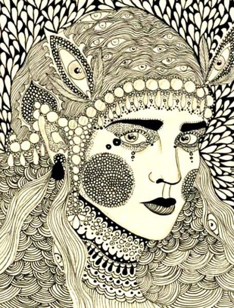 ![Рисунки чёрной ручкой девушки]()