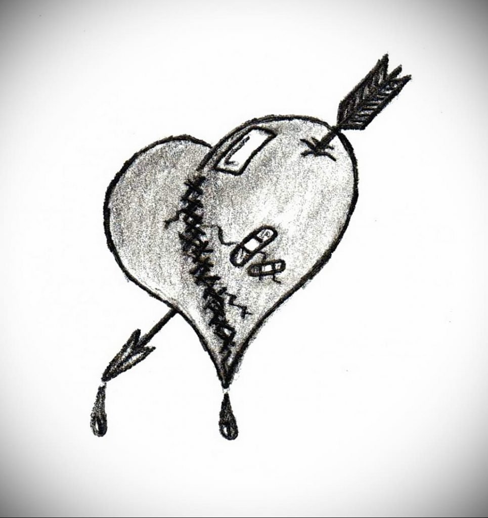 ![Разбитое сердце рисунок карандашом для срисовки]()