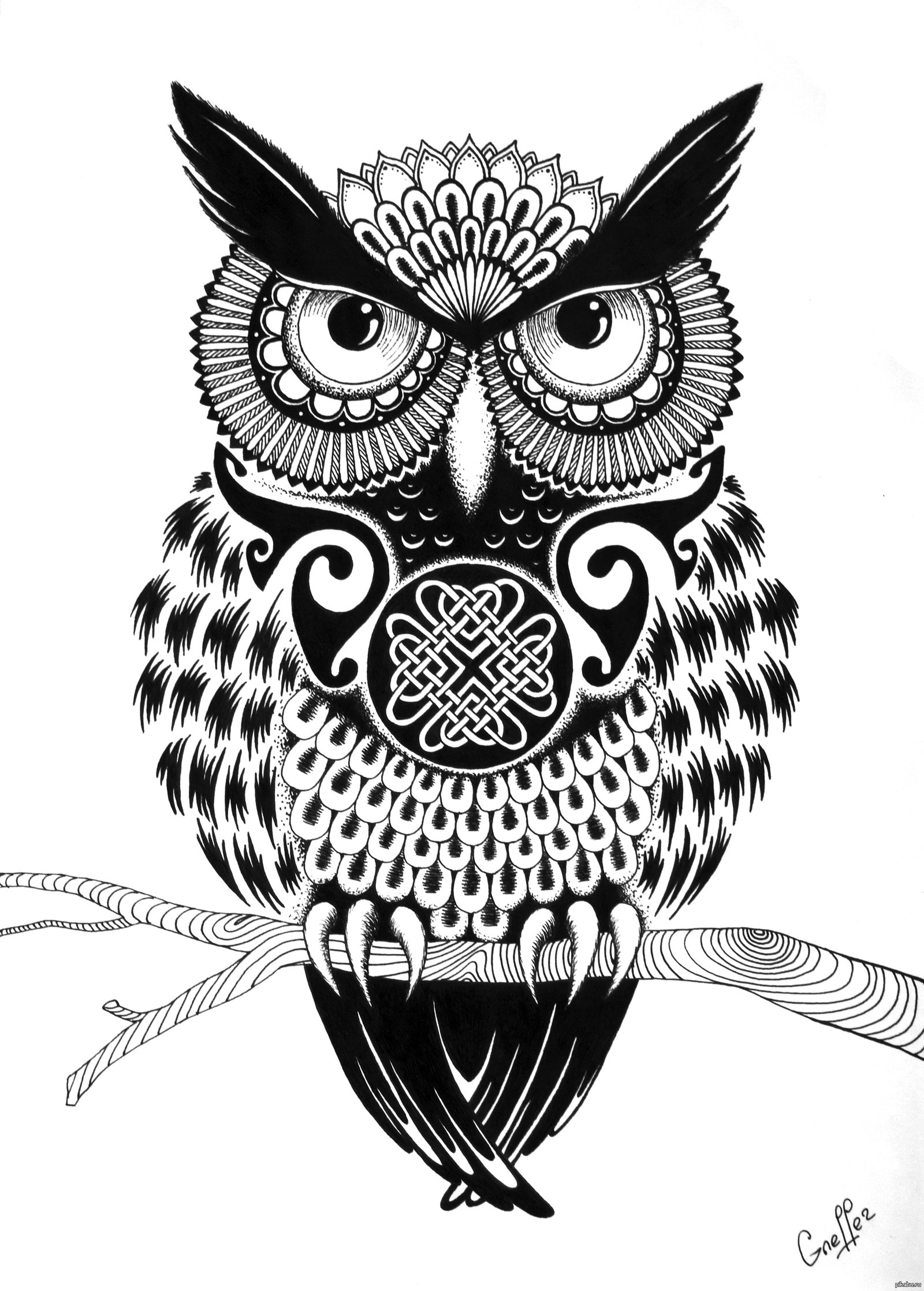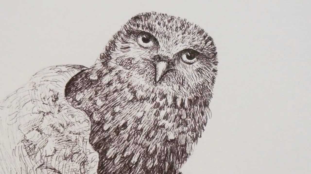 ![Сова черной гелевой ручкой]()