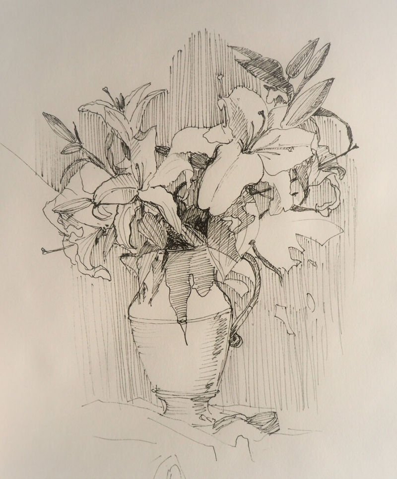 ![Наброски цветов в вазе]()