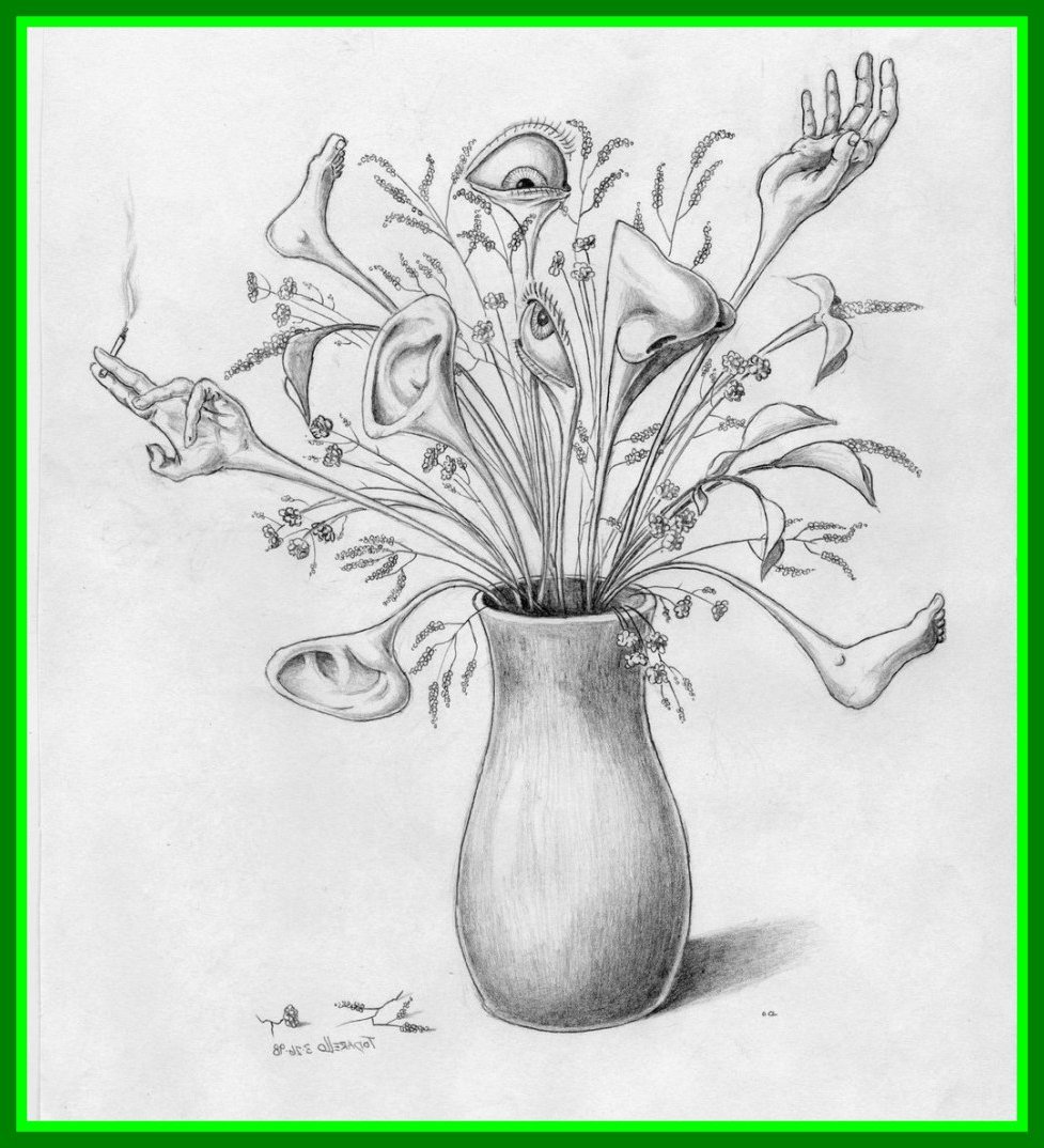 Ваза с цветами рисунок карандашом