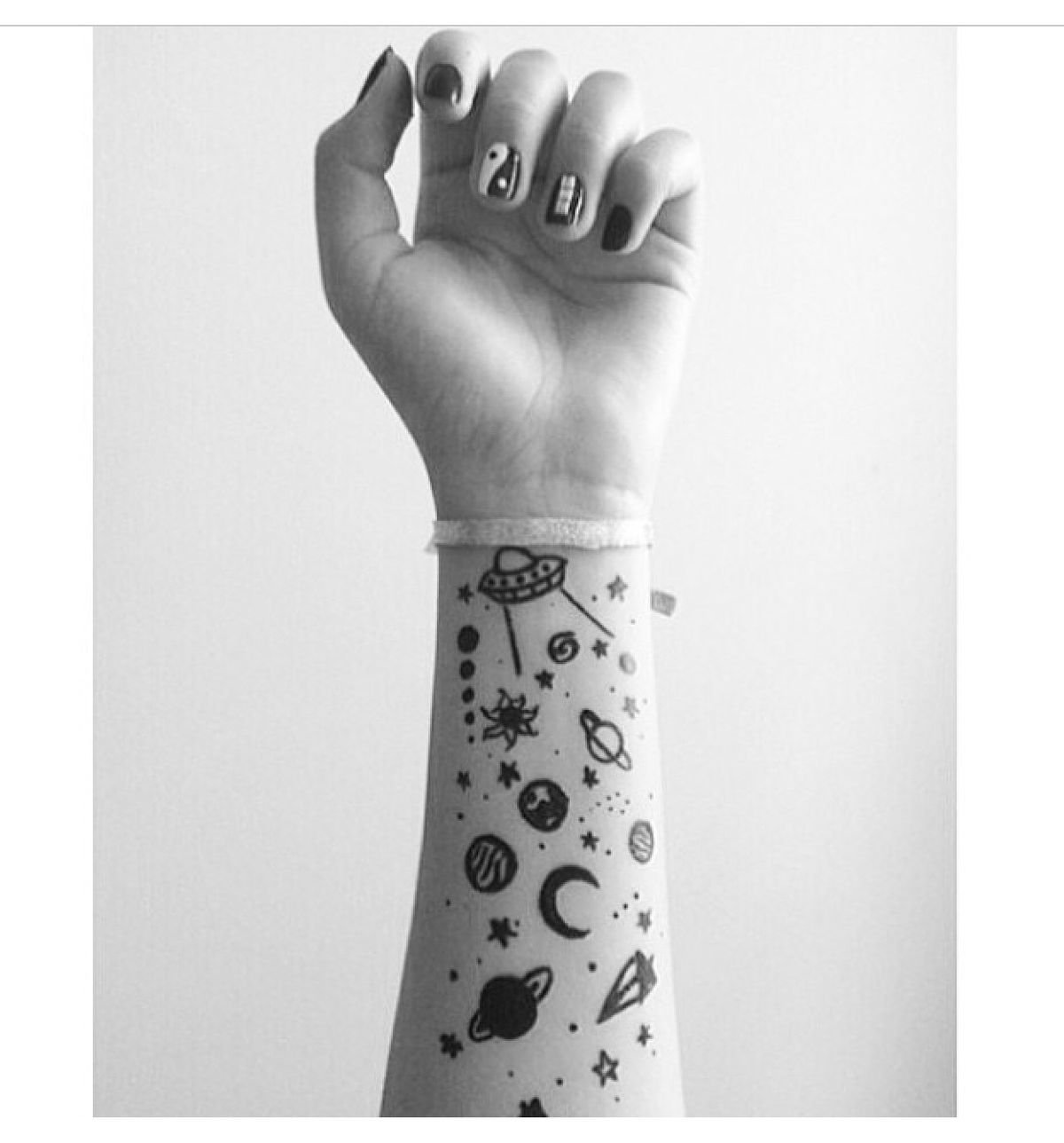 ![Рисунки на руке черной ручкой]()