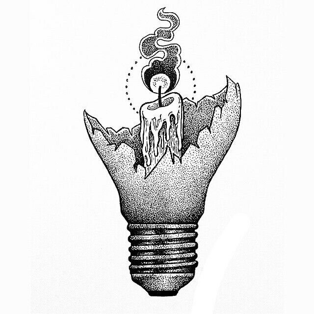 ![Тату лампочка эскиз]()