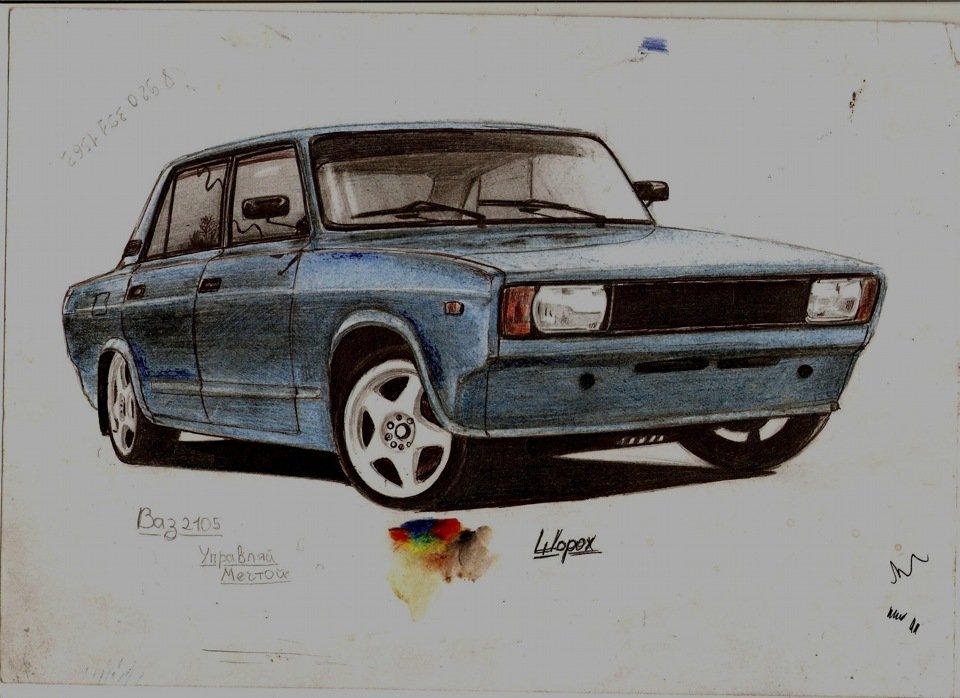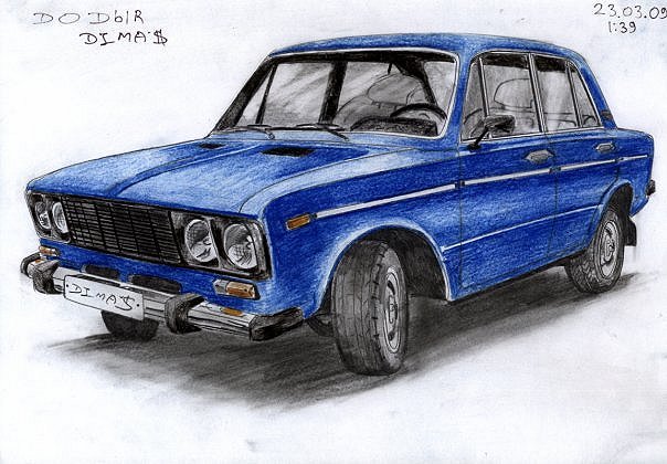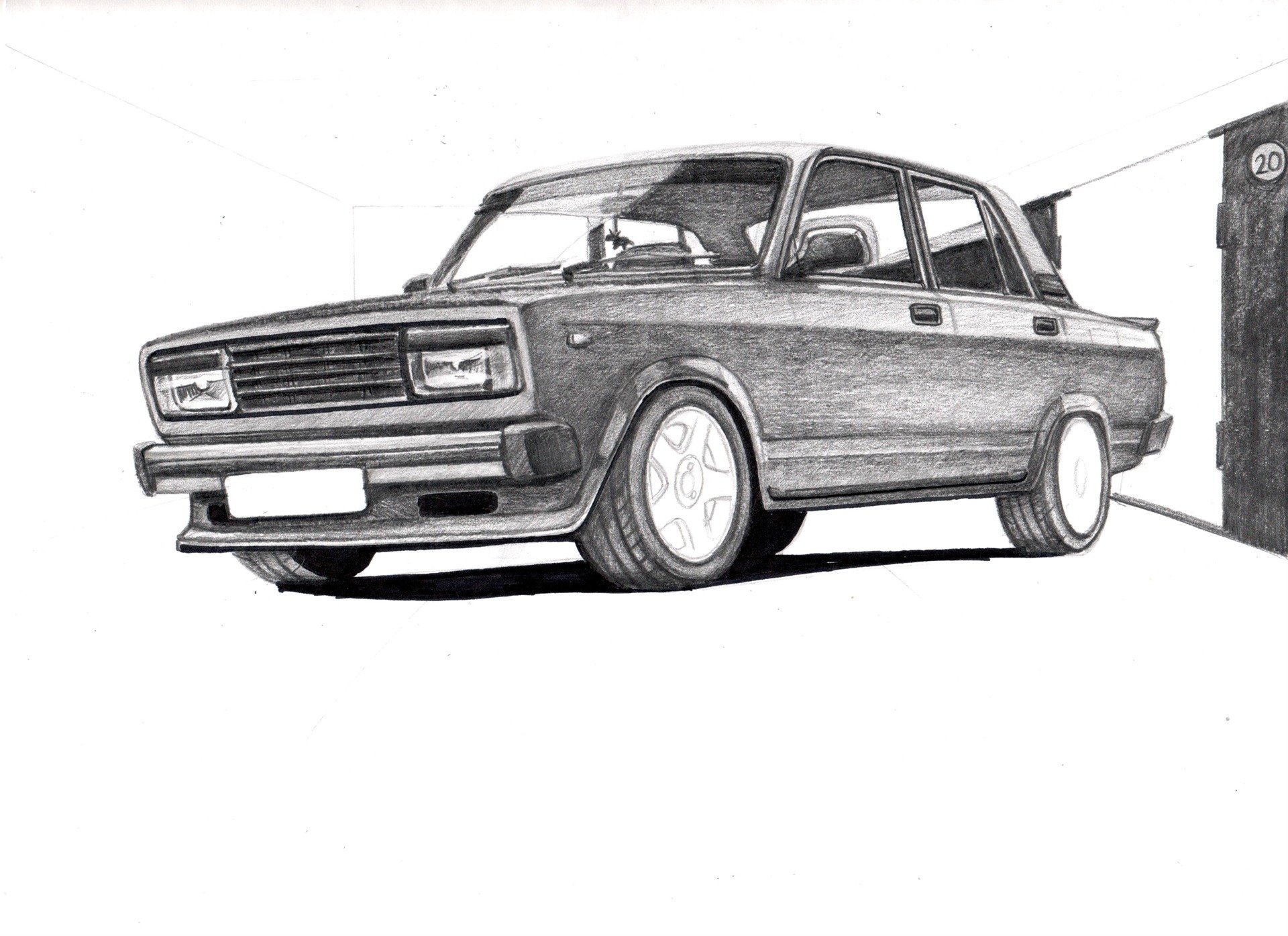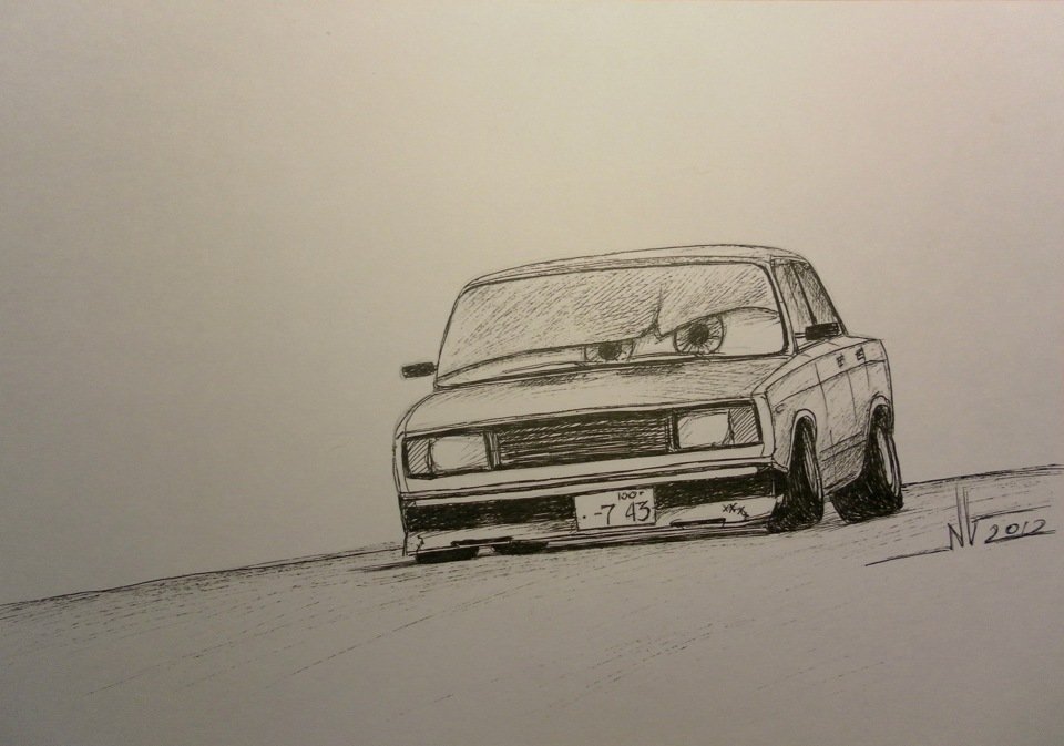 ![ВАЗ 2107 рисунок карандашом сбоку]()