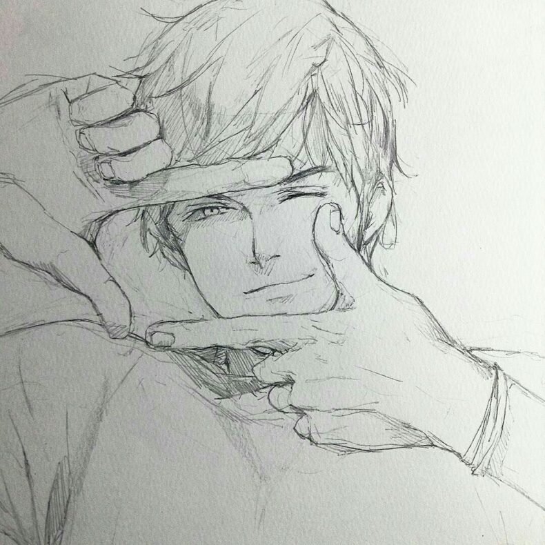 Аниме лицо парня карандашом