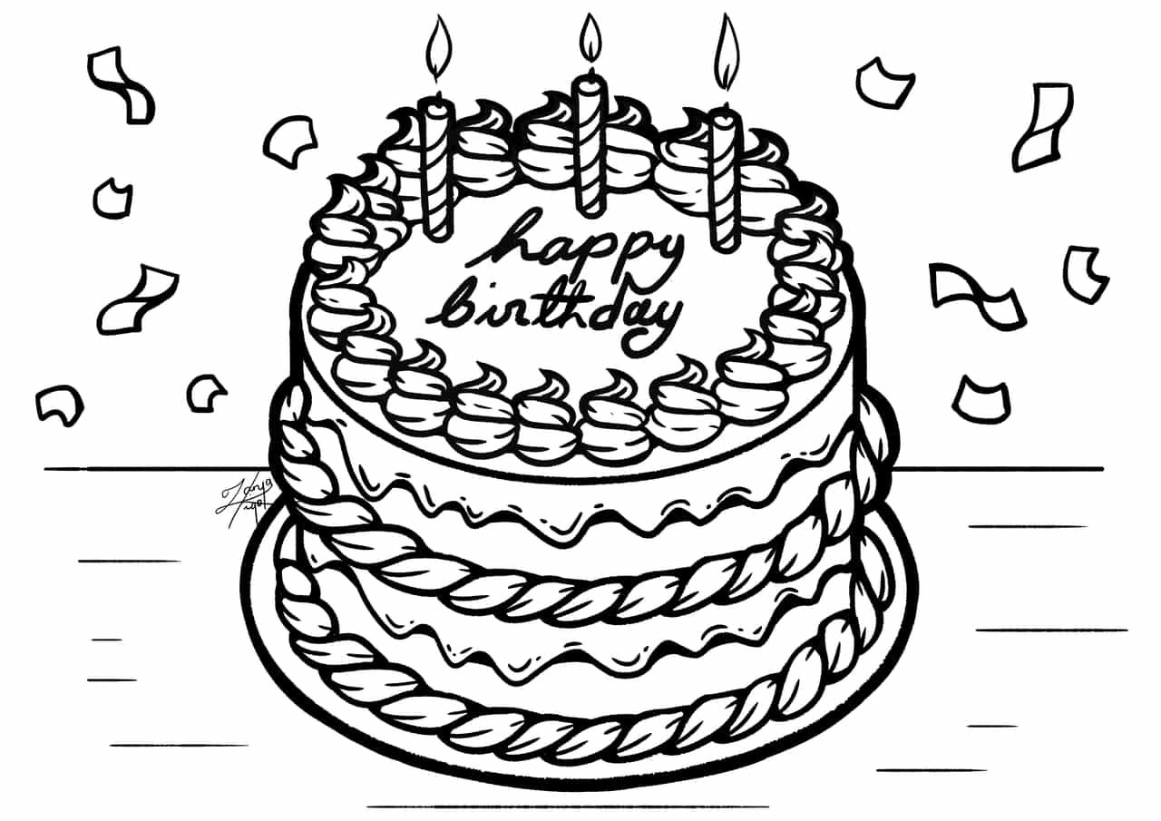 Раскраска торт на день рождения