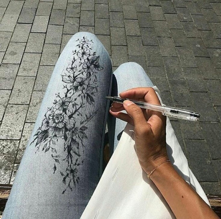 Рисунок на джинсах ручкой - это креативный и уникальный способ выразить свою индивидуальность и стиль через одежду. Такой рисунок может быть выполнен различными способами: от простых линий и геометрических фигур до сложных и детализированных изображений. Важно помнить, что рисунок должен быть стойким и не смываться при стирке, поэтому использование специальных маркеров или тканевых красок является предпочтительным. Будь то абстрактные узоры, цветочные мотивы или что-то совершенно уникальное, рисунок на джинсах ручкой добавит неповторимый акцент и придаст особенный шарм вашему образу.