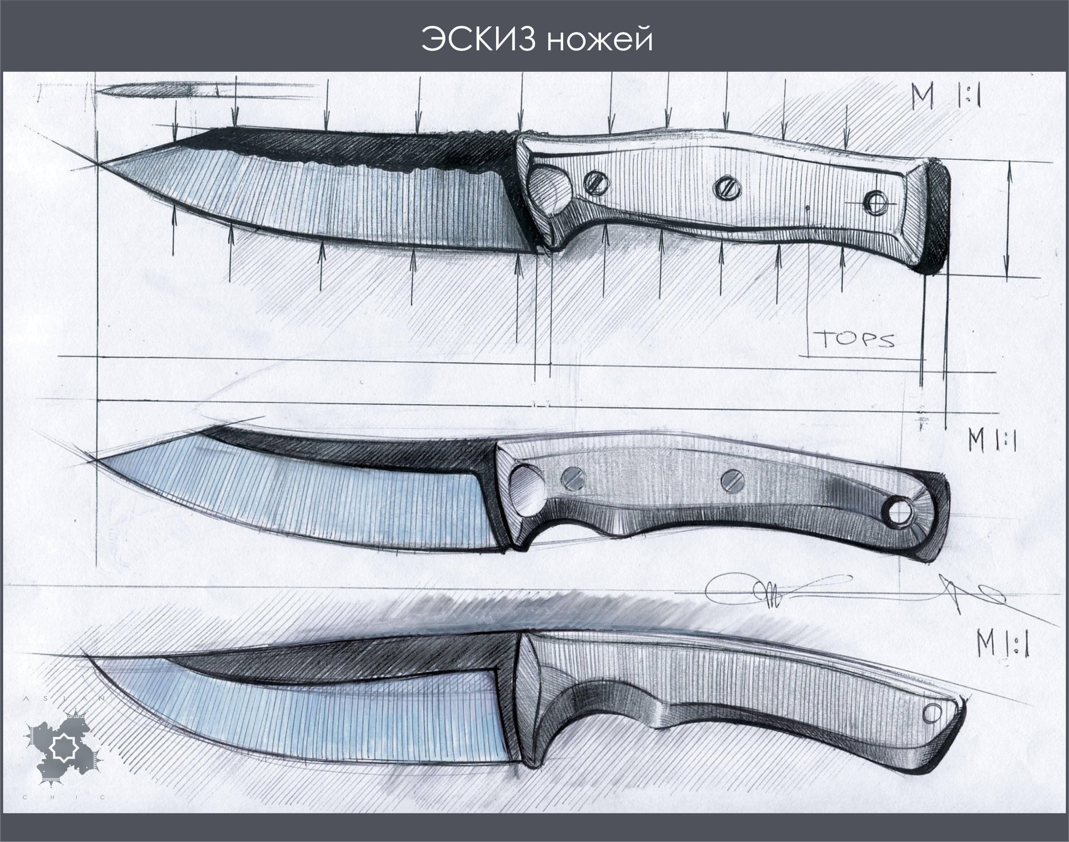 ![Эскизы ножей]()