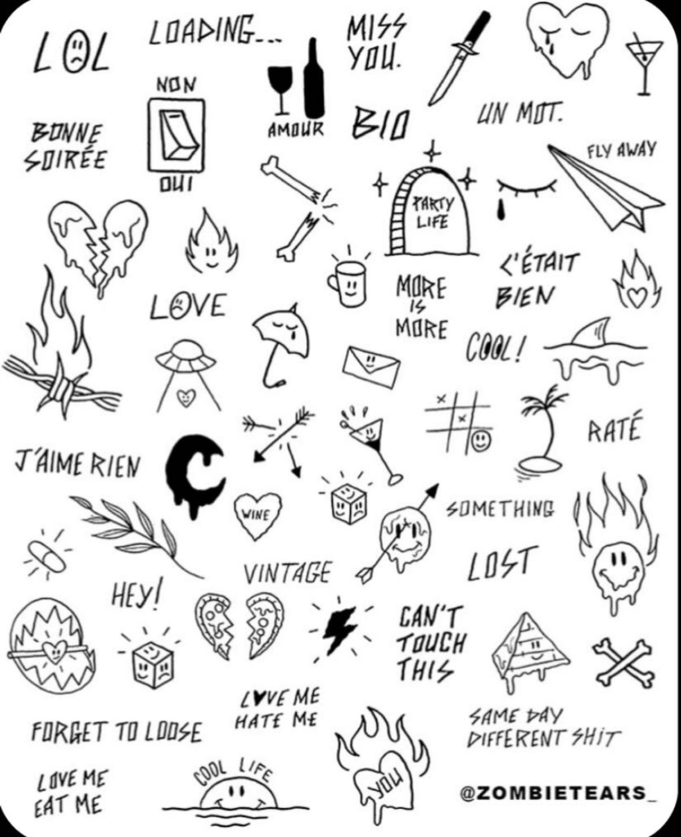 ![Маленькие рисунки и надписи чёрной ручкой]()