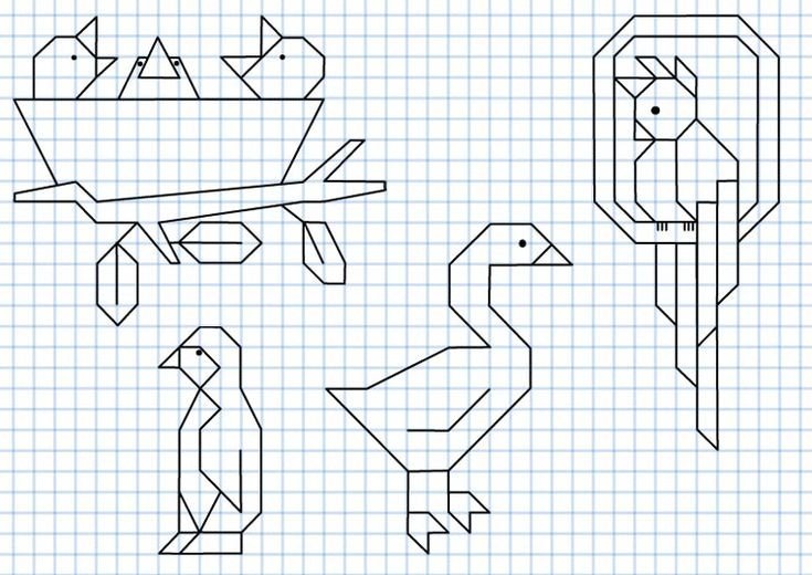 ![Геометрические фигуры по клеточкам в тетради сложные]()