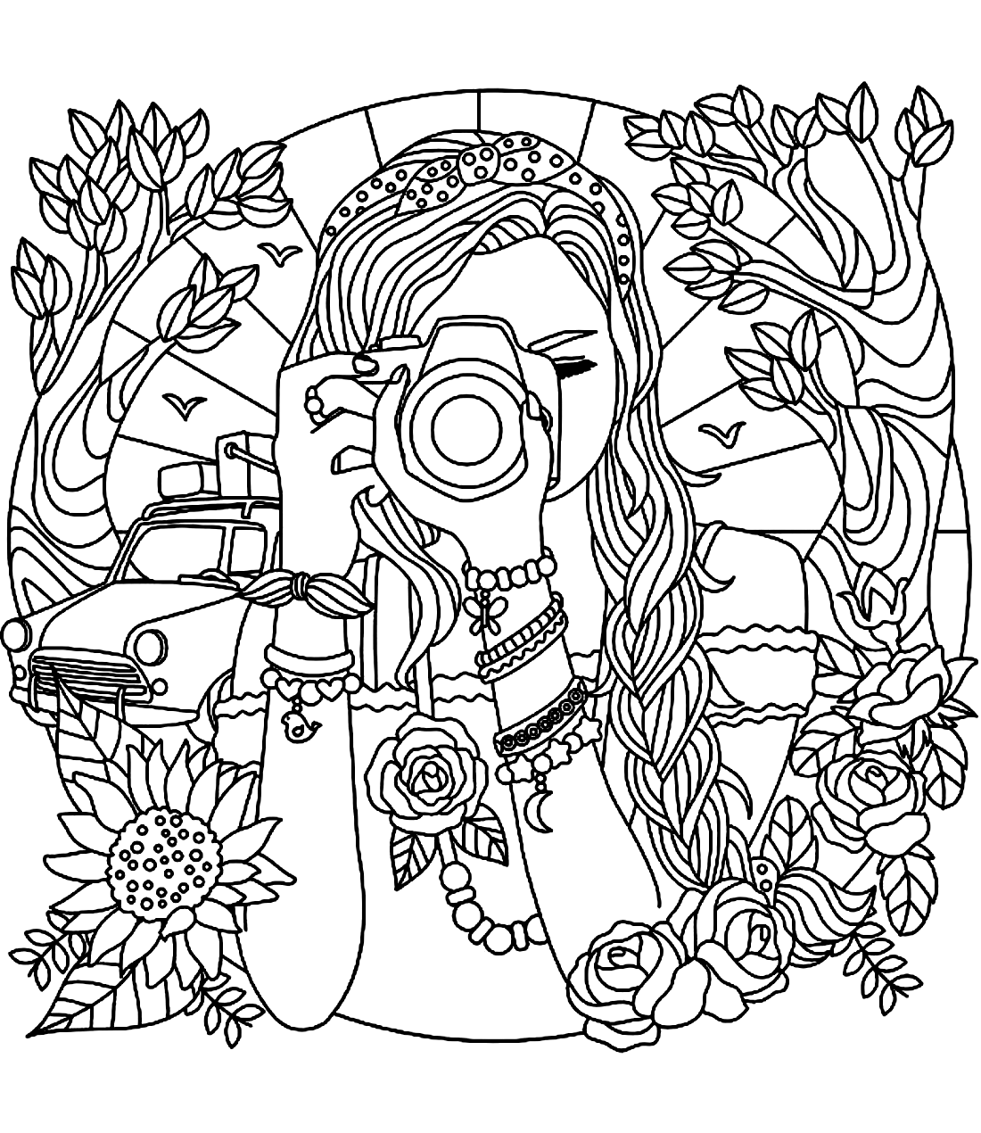 ![Раскраски для девочек сложные]()