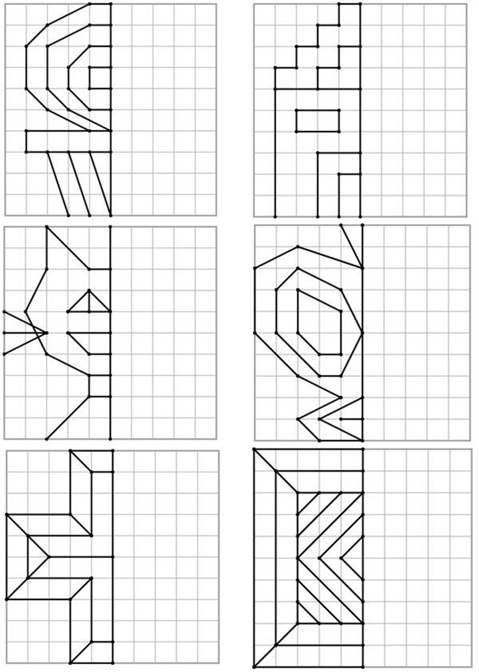 Дорисуй симметричные фигуры
