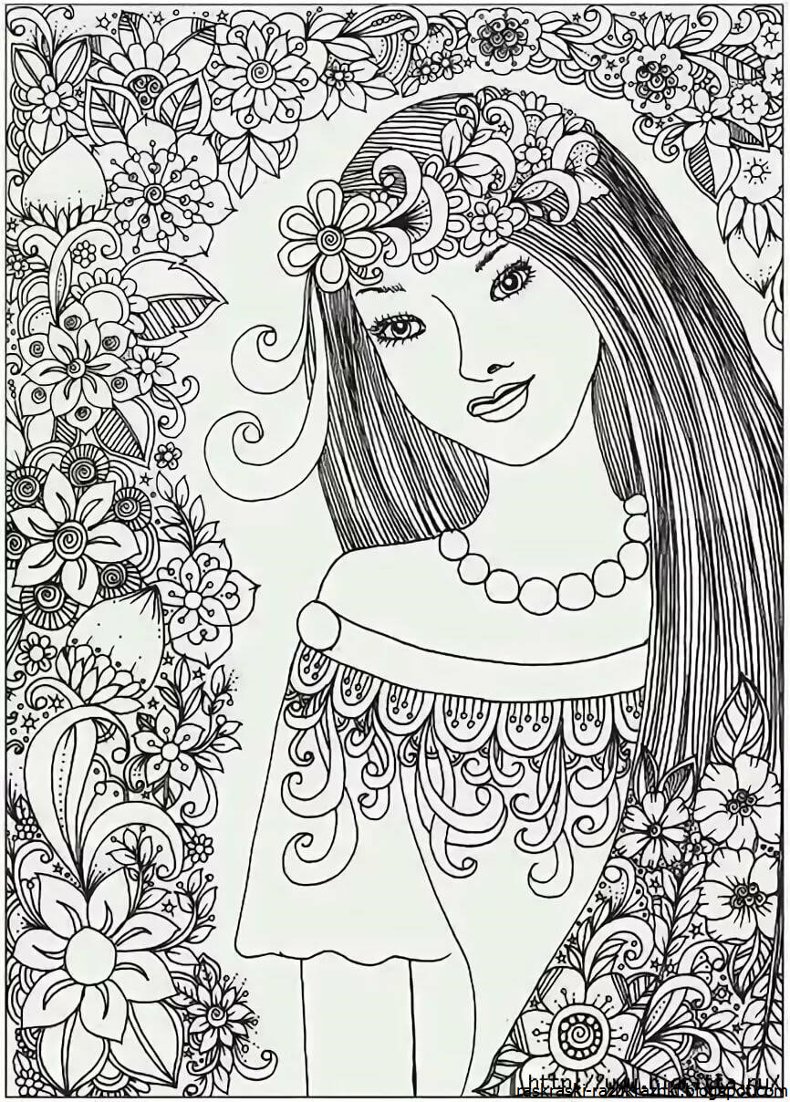 ![Раскраски для девочек сложные]()