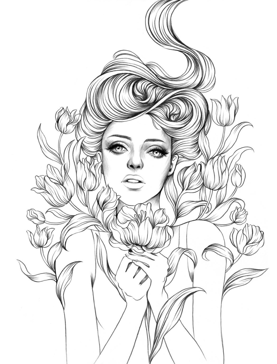 ![Эскизы для раскрашивания девушки]()