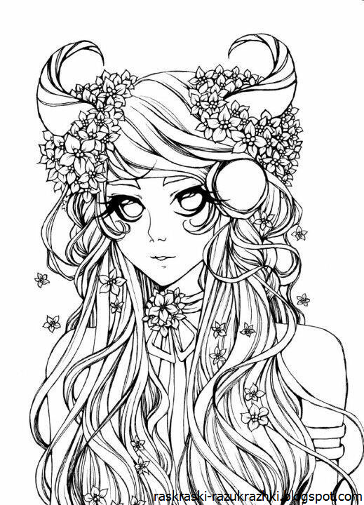 ![Раскраска для девочек антистресс аниме]()