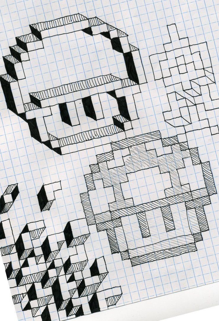 Рисунки ручкой в тетради в клетку