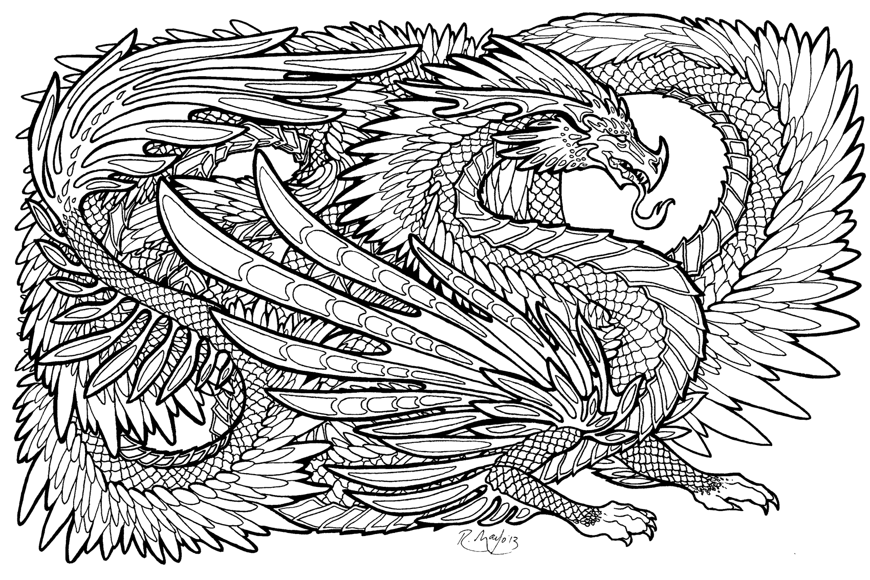 Раскраски драконы сложные