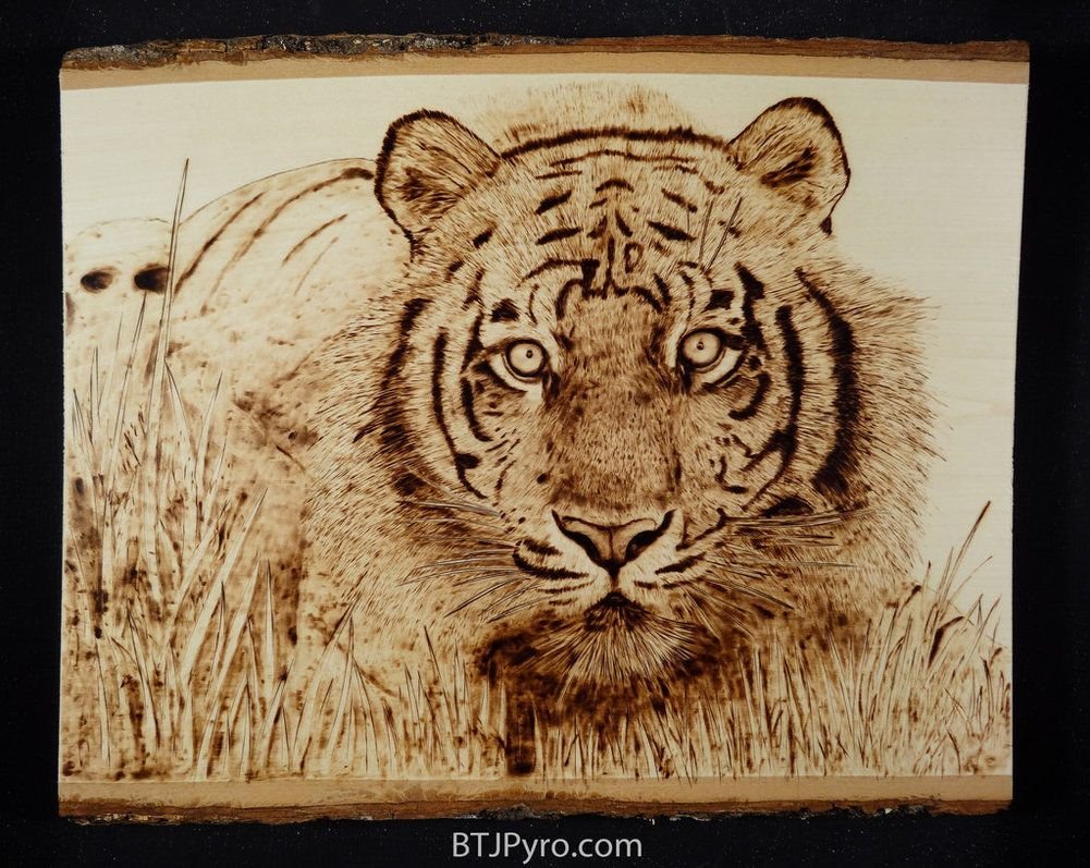 Тигр пирография по дереву