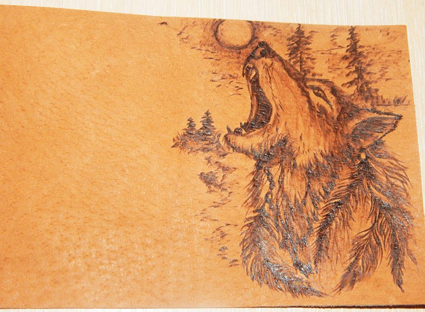 ![Узор на коже выжигателем по дереву]()