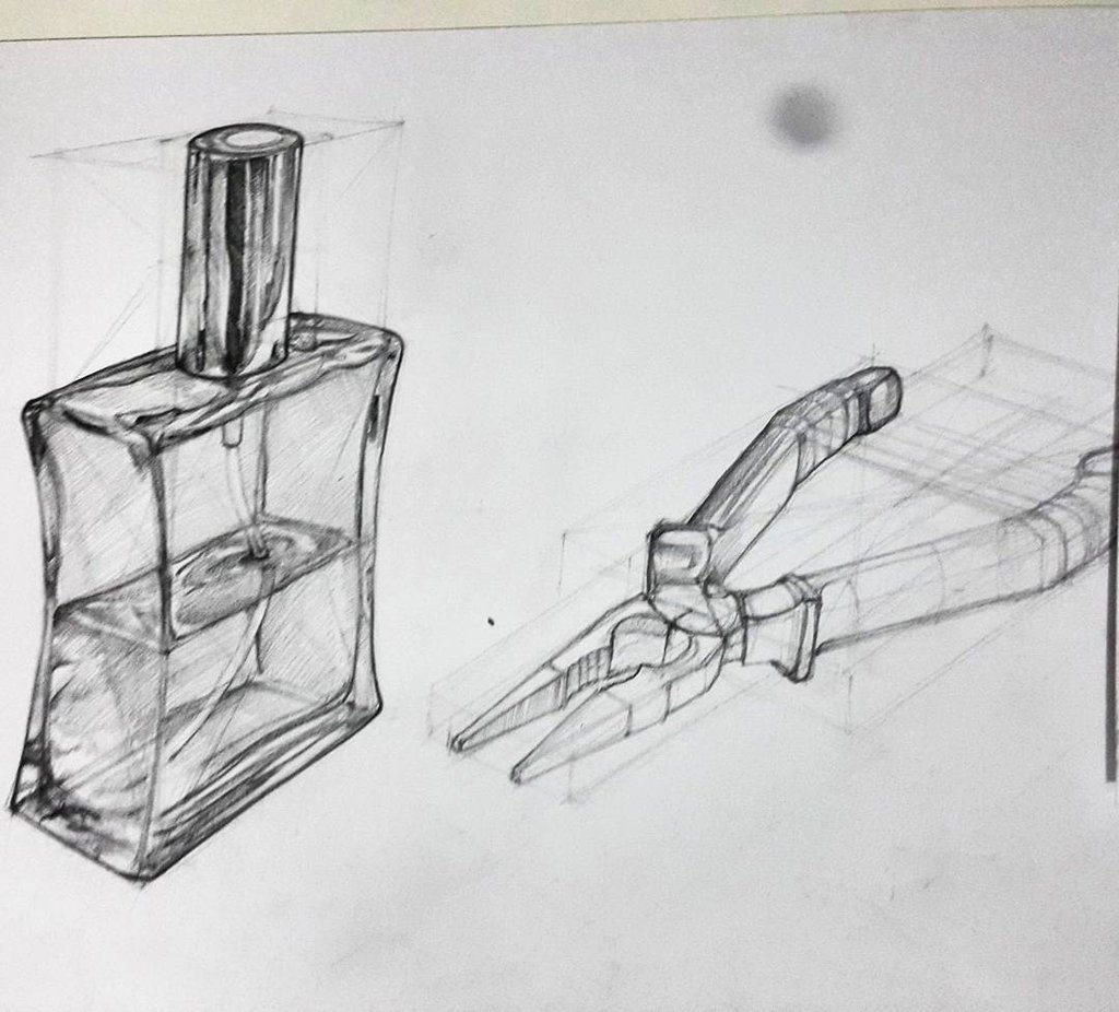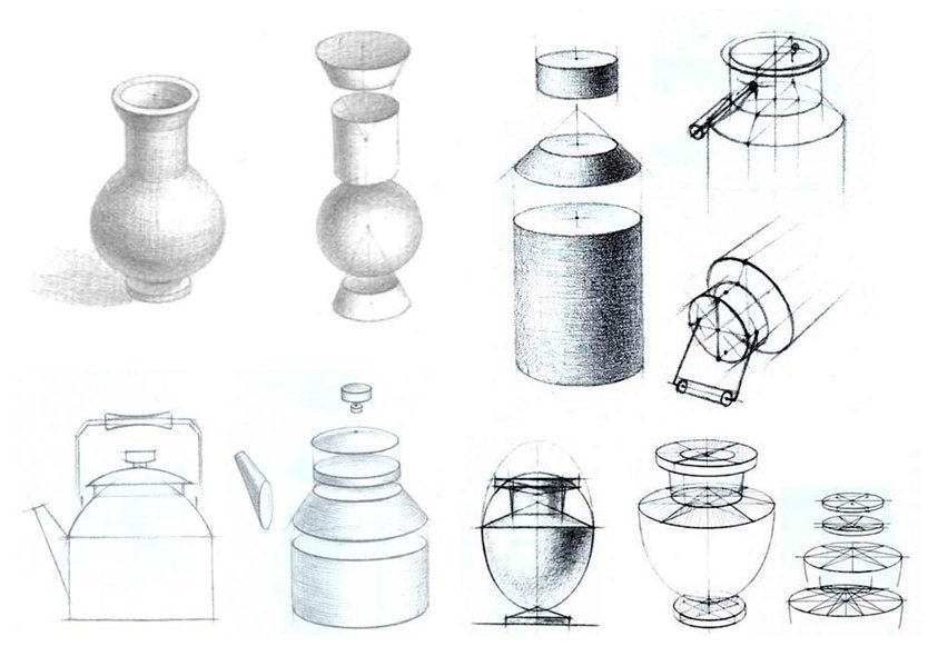 ![Линейно-конструктивный рисунок предмета сложной формы]()