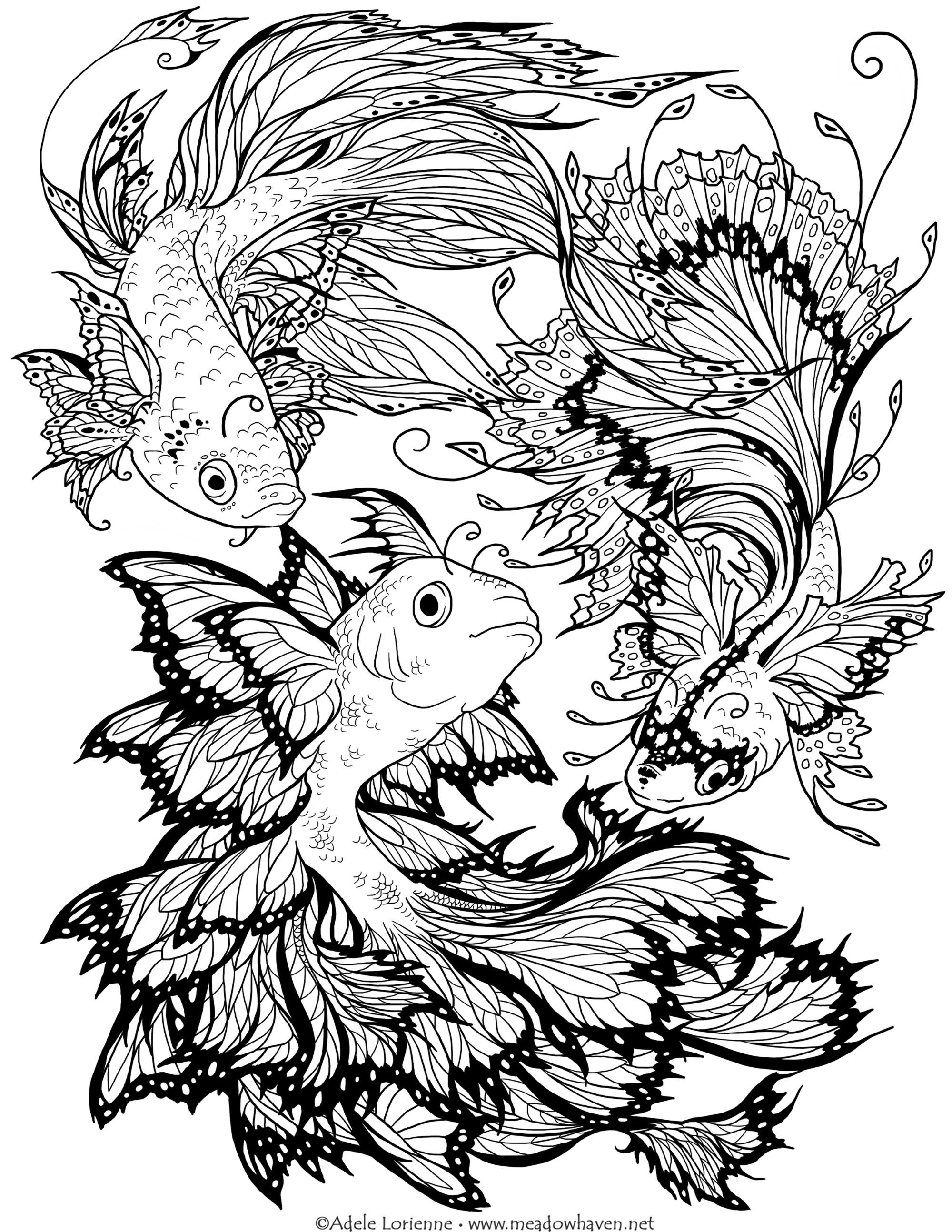 Раскраски рыбки сложные