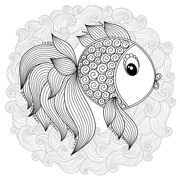 Золотая рыбка Зентангл