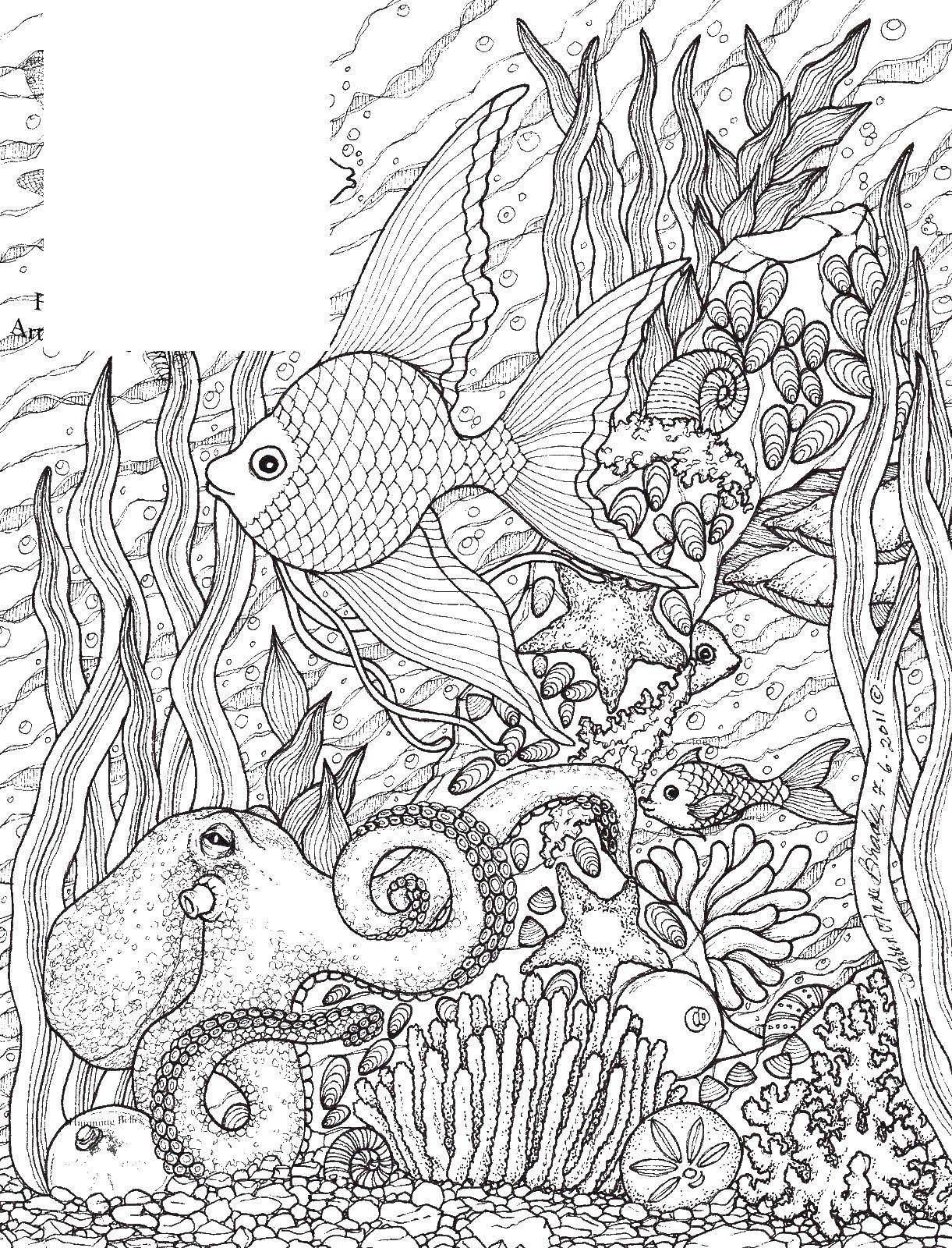 ![Подводный мир раскраска сложная]()