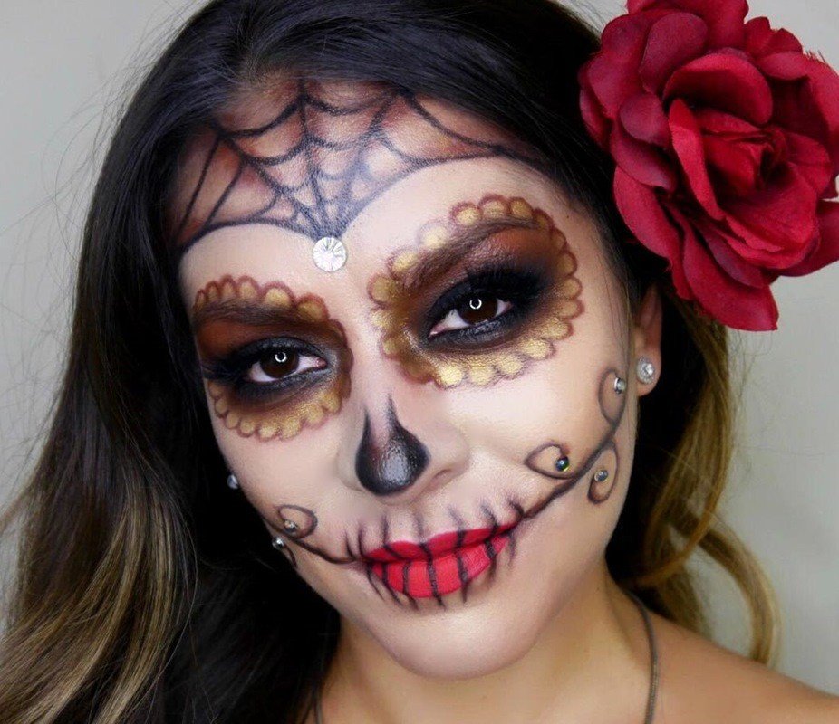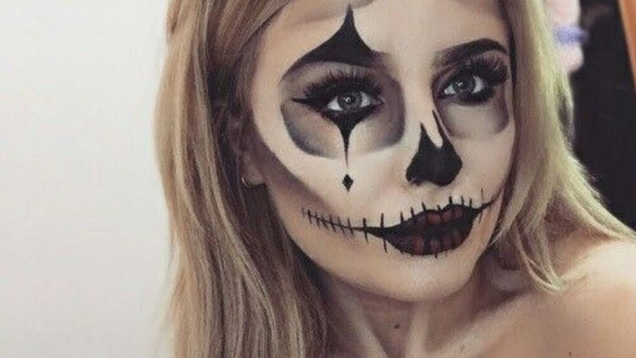 ![Макияж на Хэллоуин легкий и красивый скелет]()
