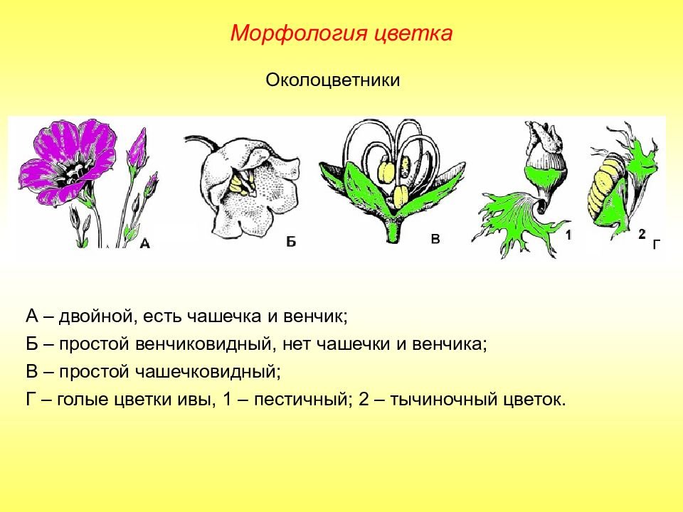![Строение цветков с двойным и простым околоцветником]()