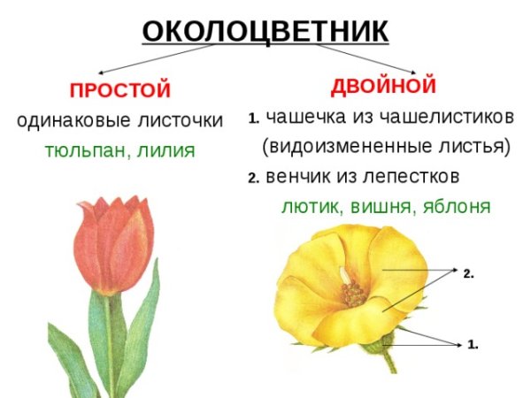 Строение цветков с двойным и простым околоцветником