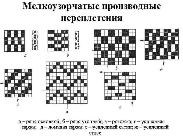 ![Полотняное саржевое атласное сатиновое переплетения]()