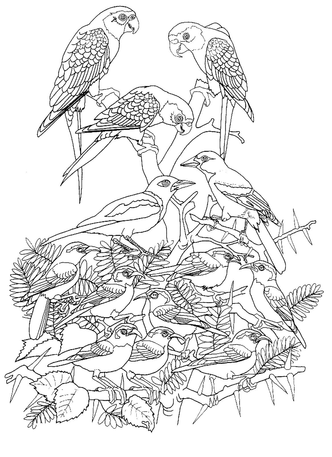 Раскраска птицы сложные