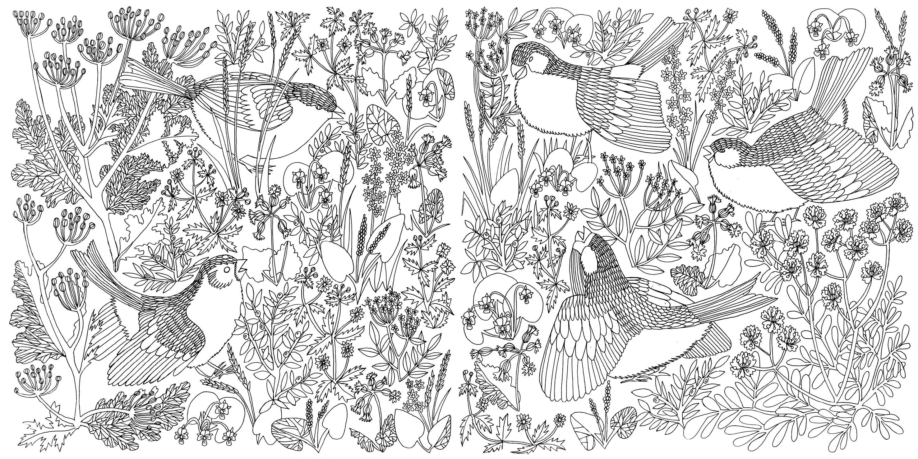 ![Раскраска цветы и птицы]()