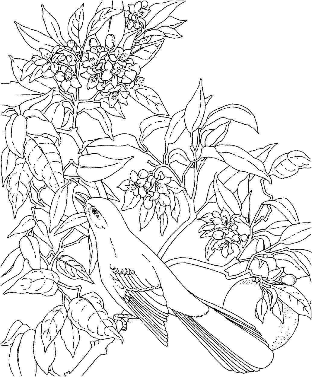 Раскраска цветы и птицы