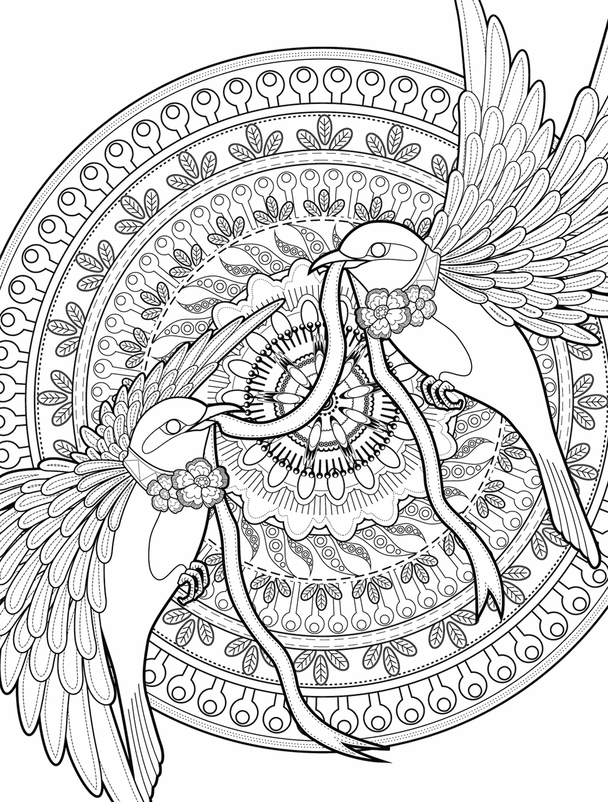 Раскраска антистресс птички узоры