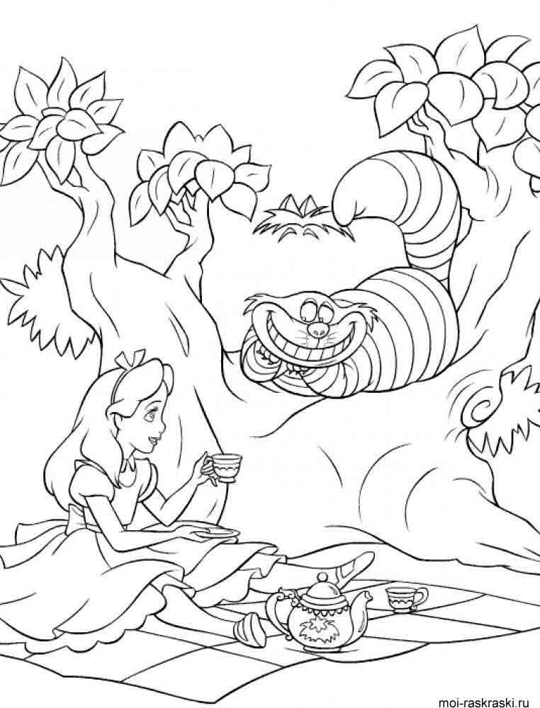 ![Алиса в Зазеркалье раскраска]()