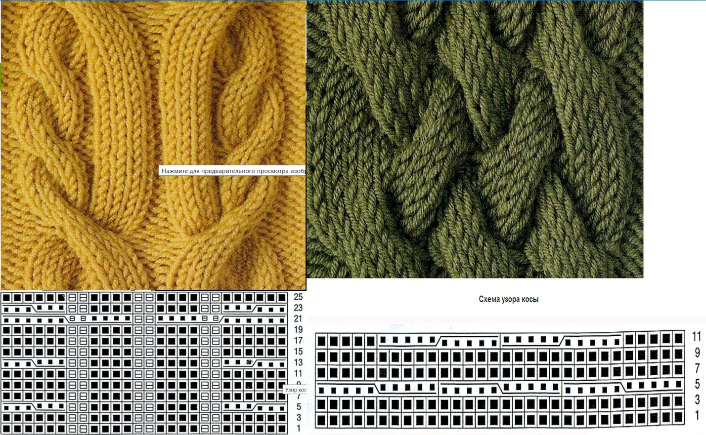 ![Косы спицами со схемами]()