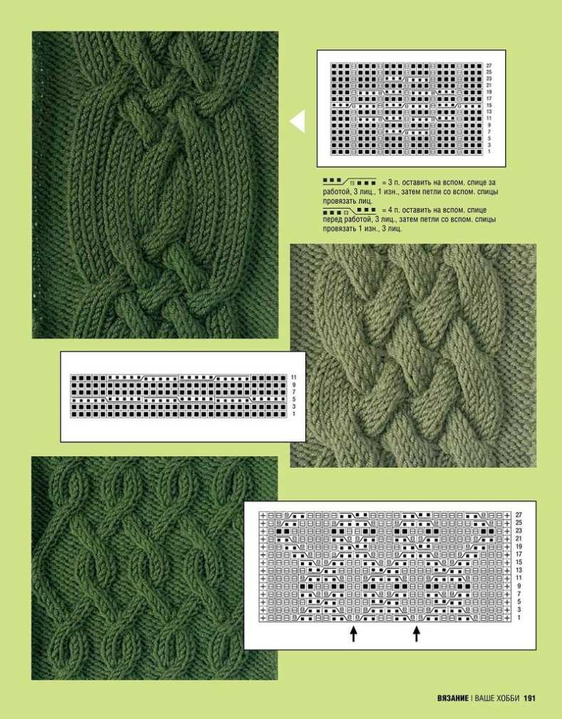 Схемы узоров жгутов и кос для вязания спицами
