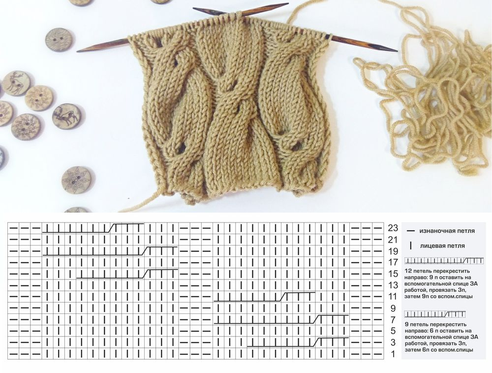 Узор коса спицами схема с описанием из 12 петель