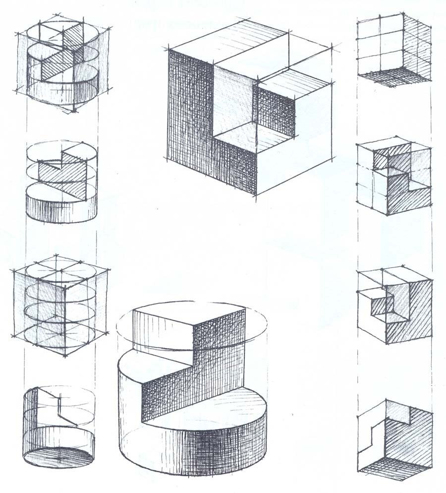![Объемные фигуры карандашом]()