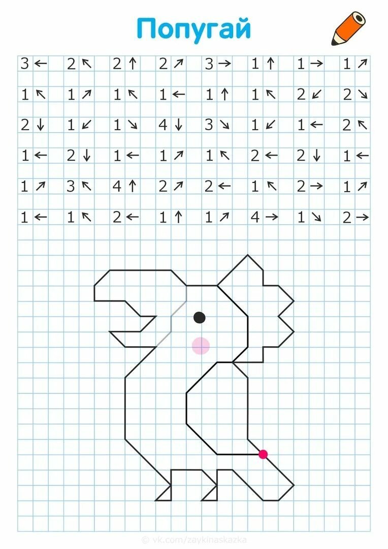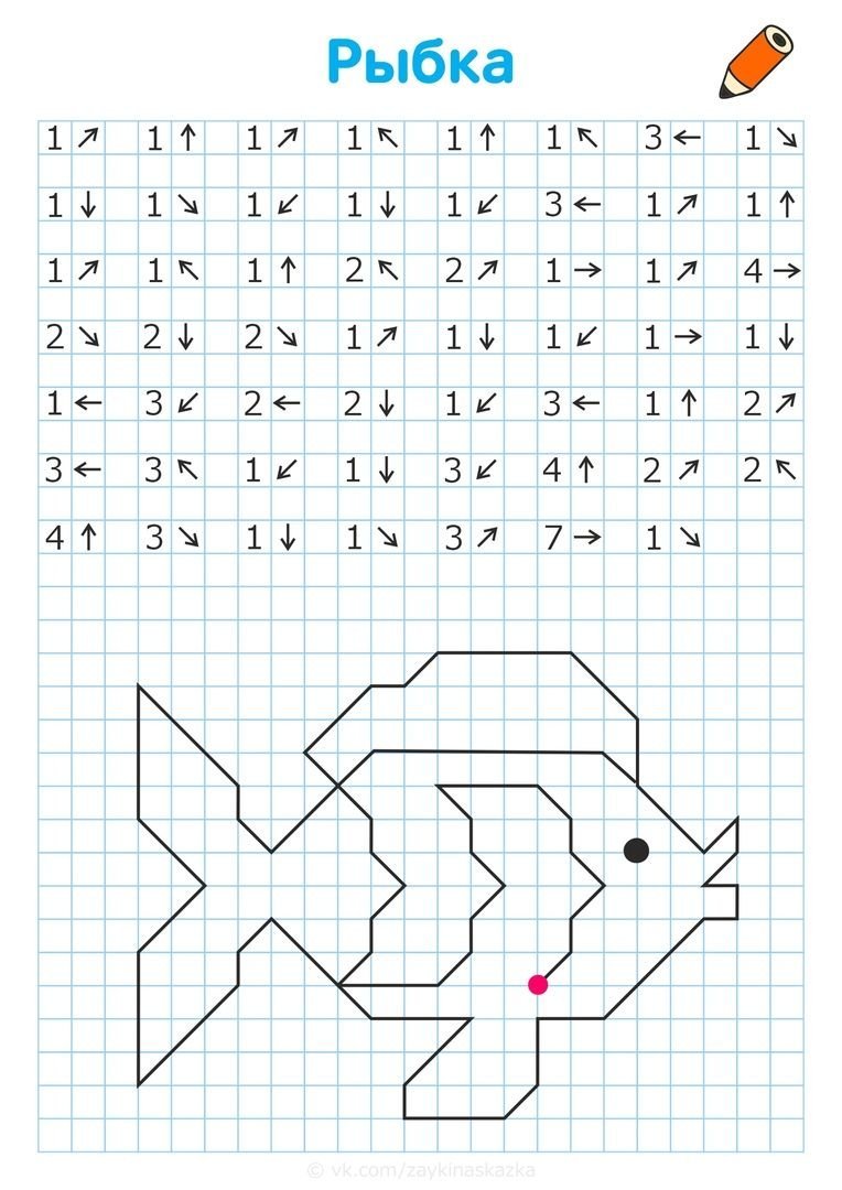 ![Графический диктант по стрелочкам для дошкольников]()