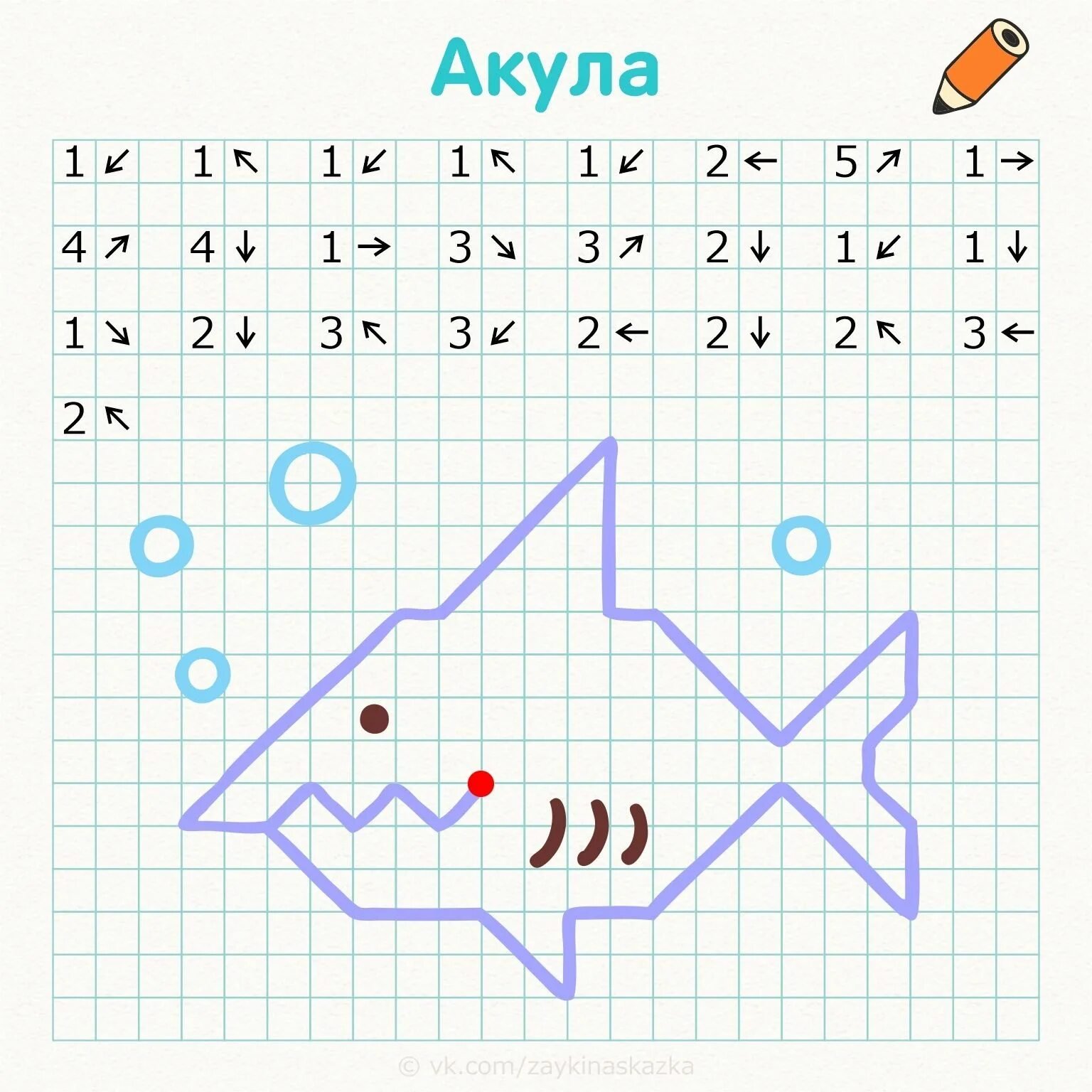 ![Рисование по клеточкам по стрелкам]()