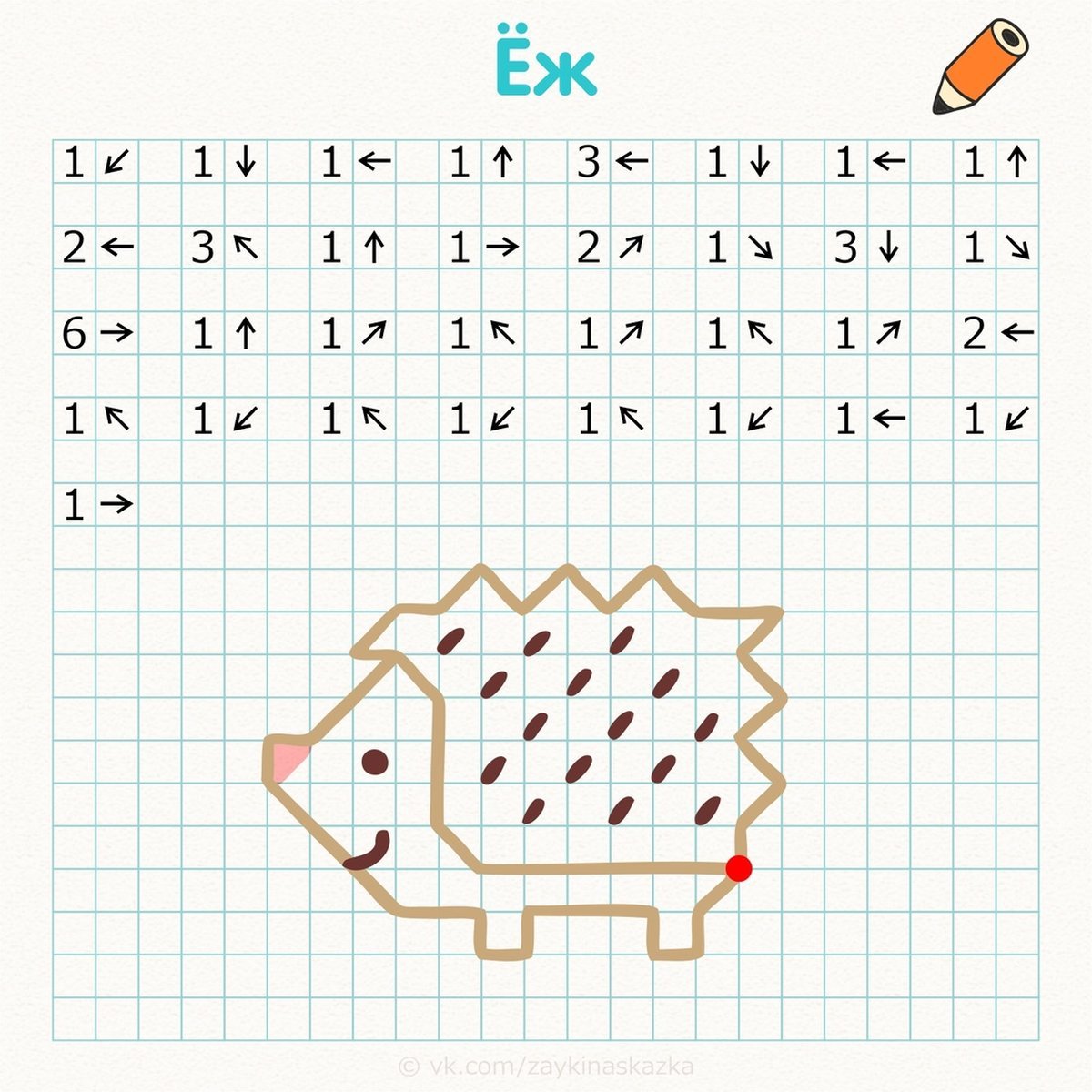Графический диктант Ёжик для дошкольников