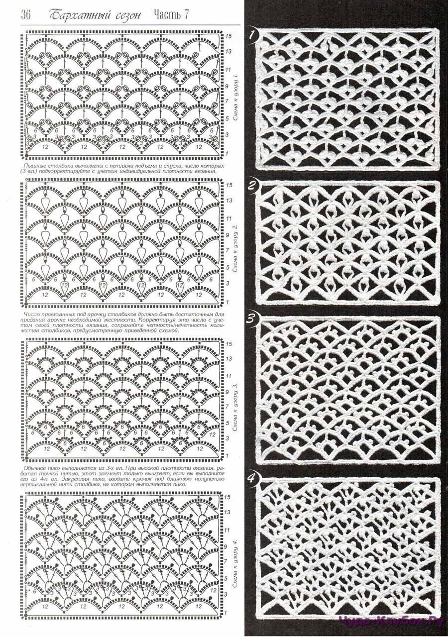 Схемы узоров крючком плотный Ажур